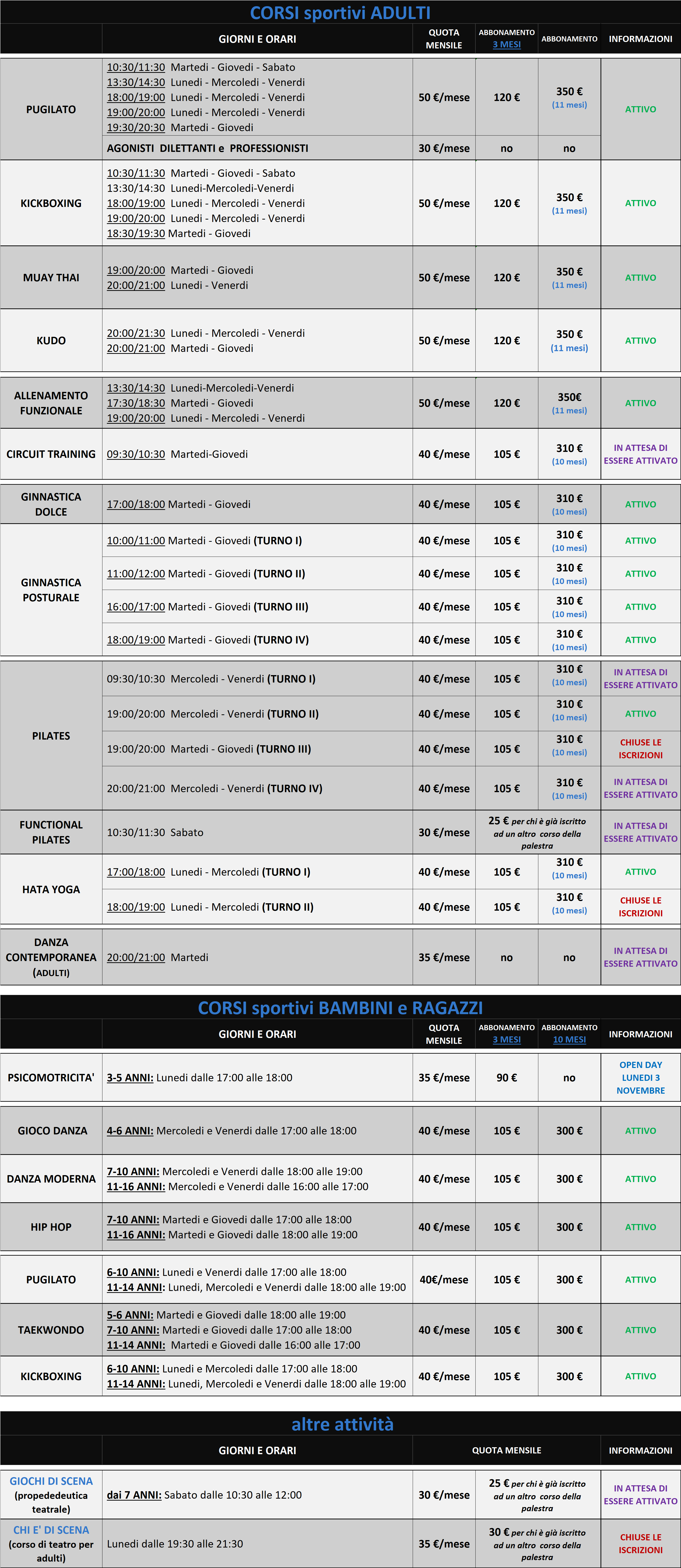 PER TUTTI I CORSI E’ OBBLIGATORIO IL CERTIFICATO MEDICO NON AGONISTICO.